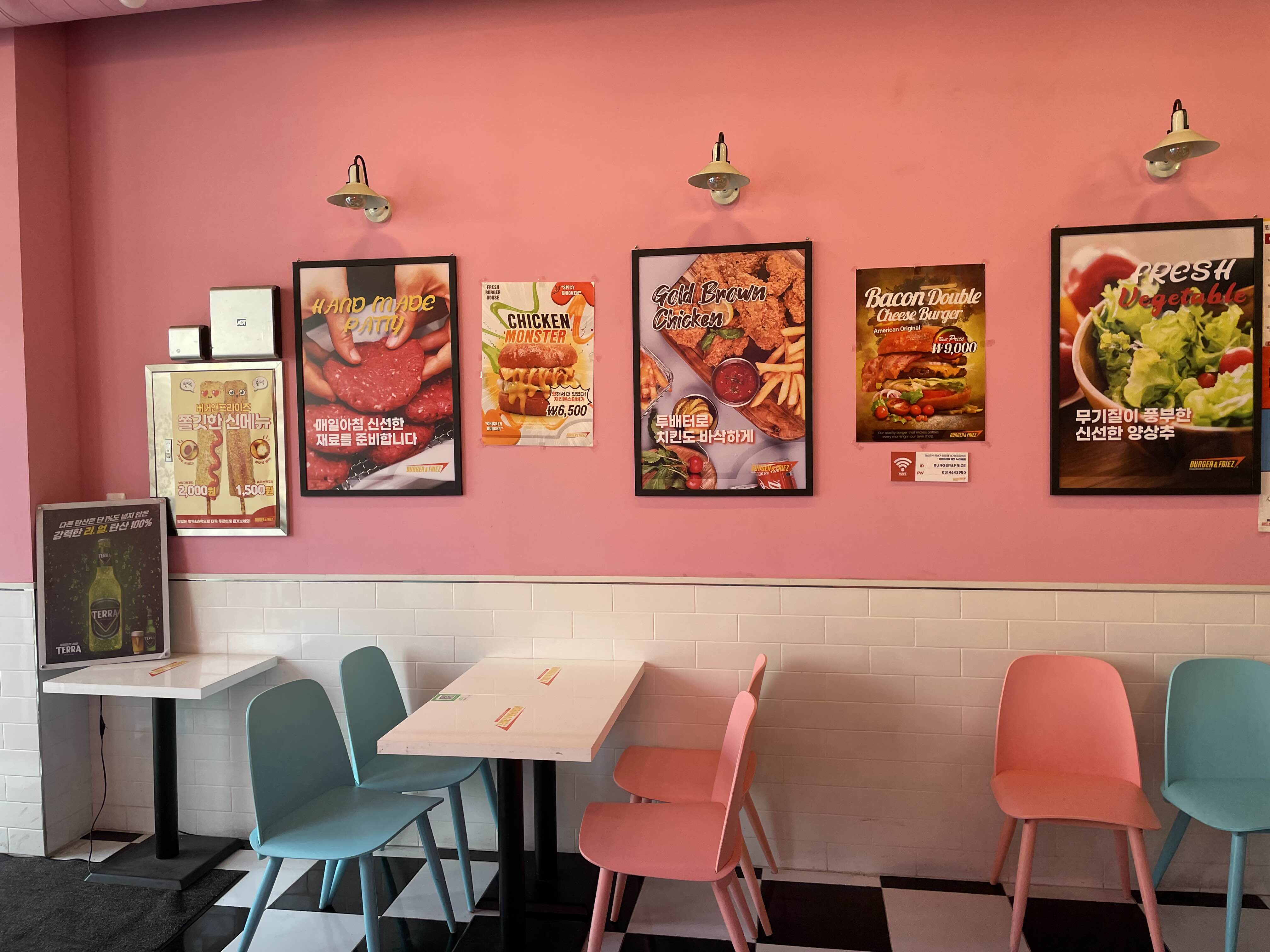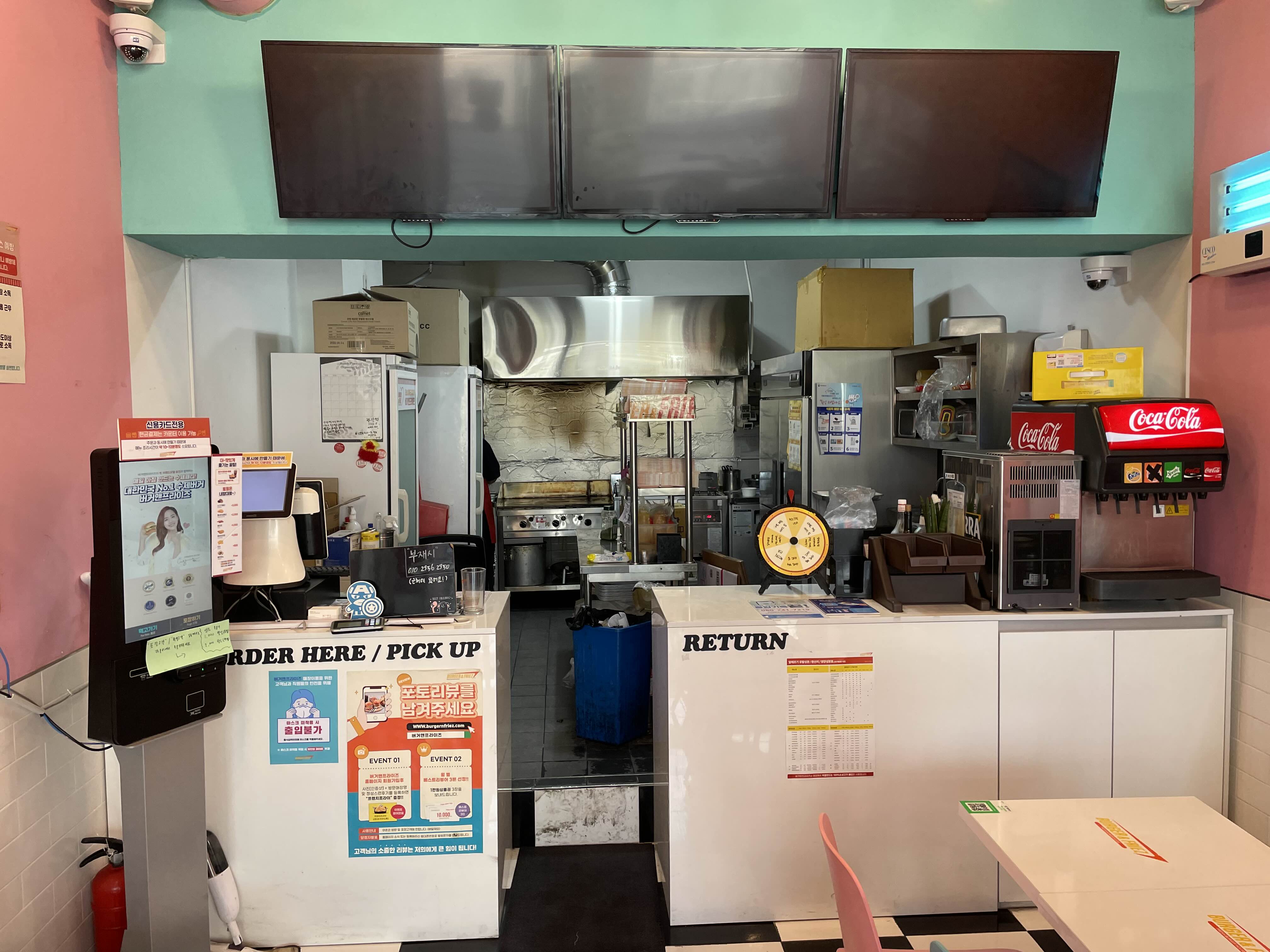 오늘은 날씨가 너무 좋아서 제 친구가 사장으로 있는 햄버거 가게에 놀러 왔습니다.