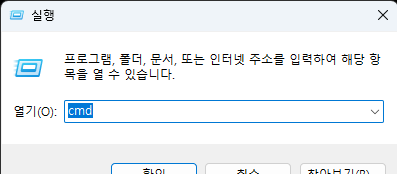 설치가 완료되면 윈도우 키+ R cmd 입력.