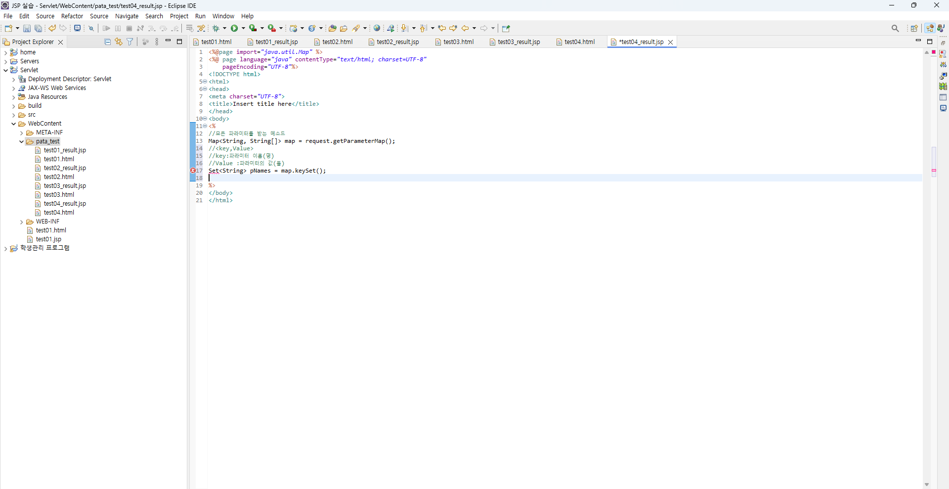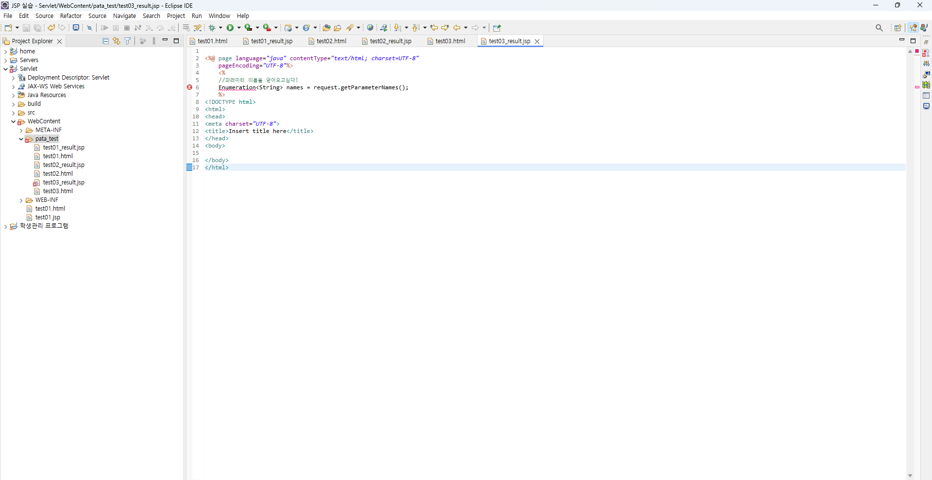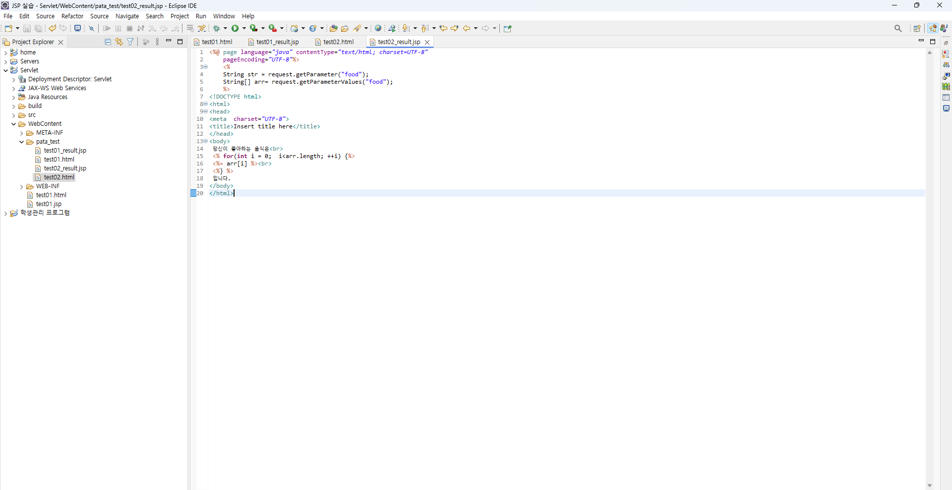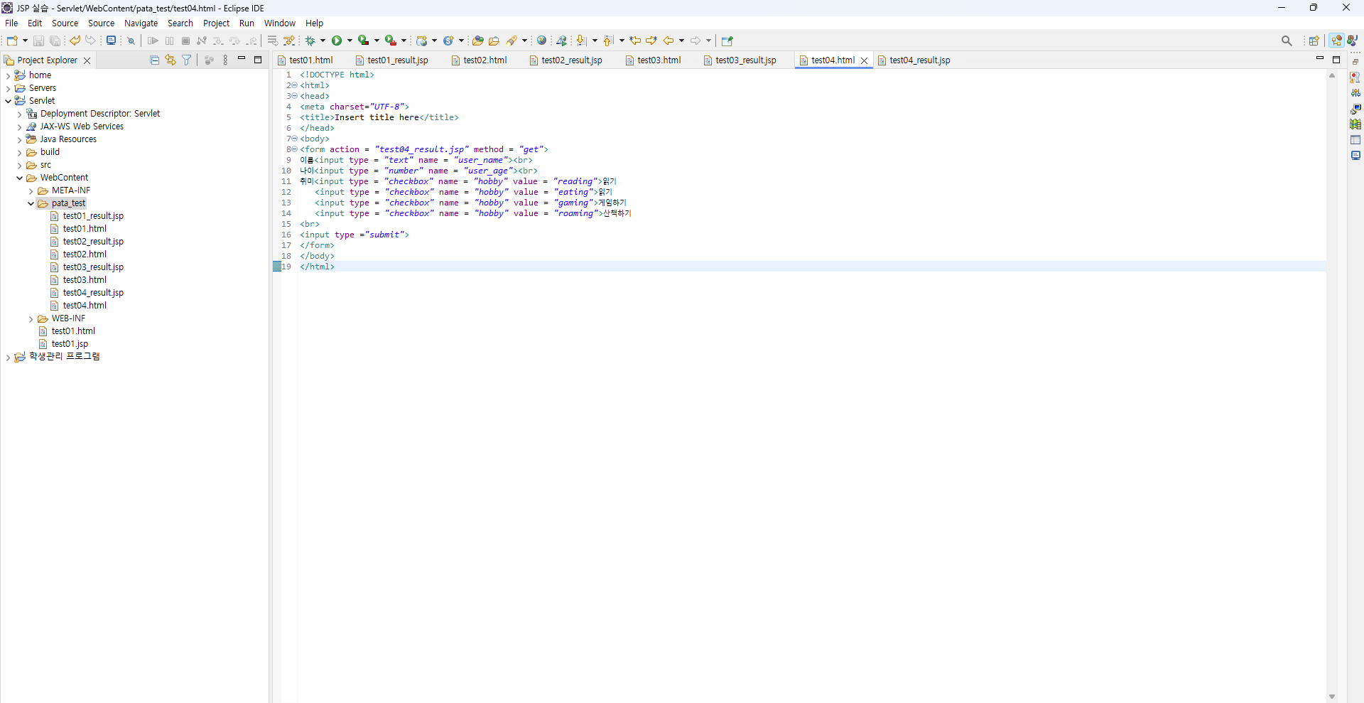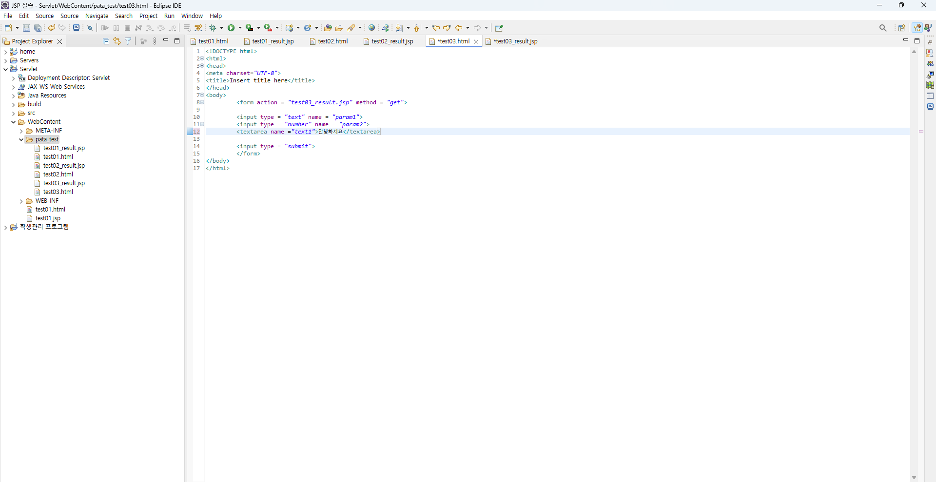 html생성시 만든이름 test01과 <form action = "test01_result.jsp" method = "get"> 명령어 내용의 action의 앞부분test01을 맞춰서 입력 해줍니다.