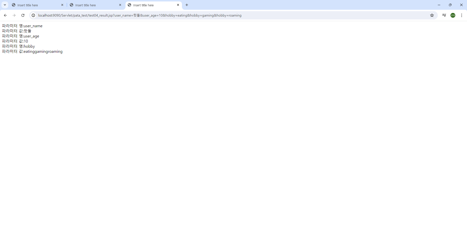 > request.getParameterValues("파라미터명"): 파라미터값들을 얻음(리턴자료형 : String[])