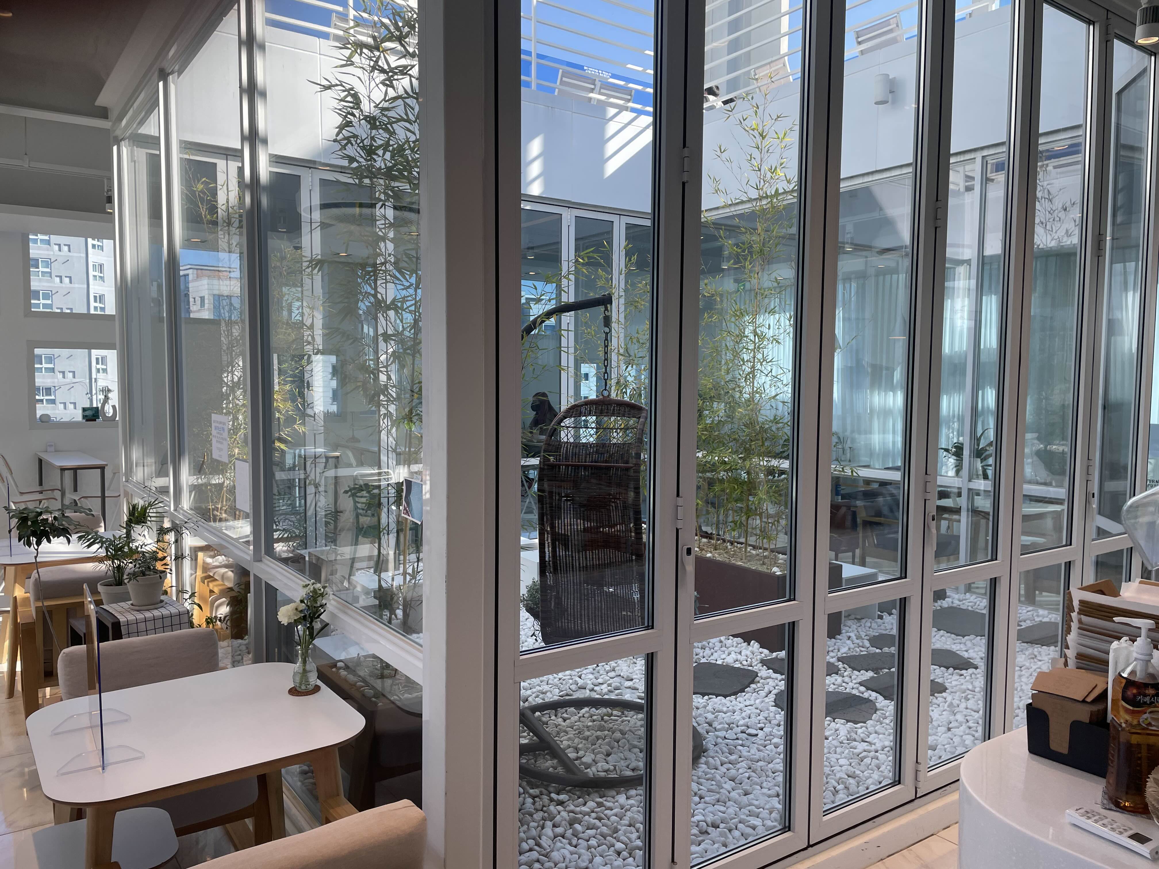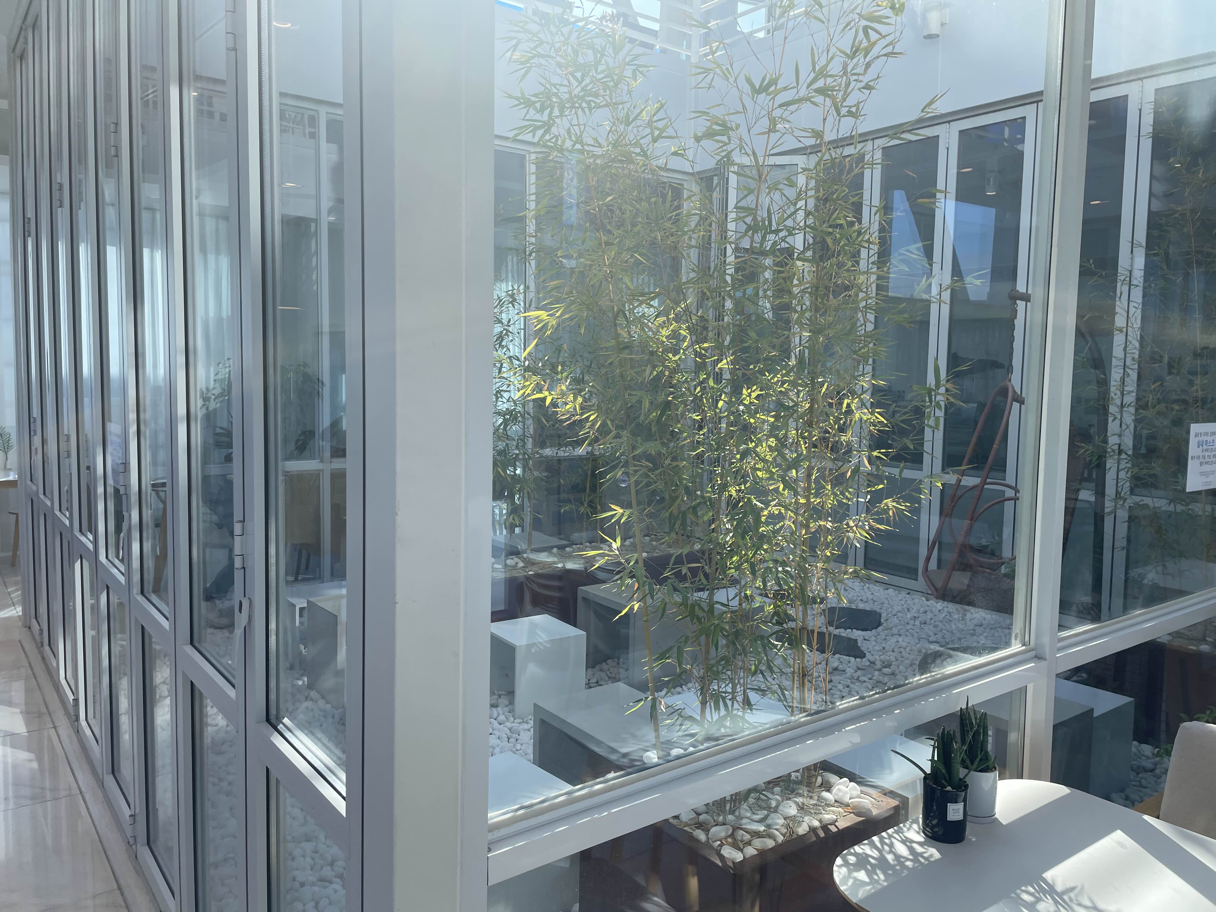 카페 중앙에 보이는 마당같이 꾸며놓은곳.