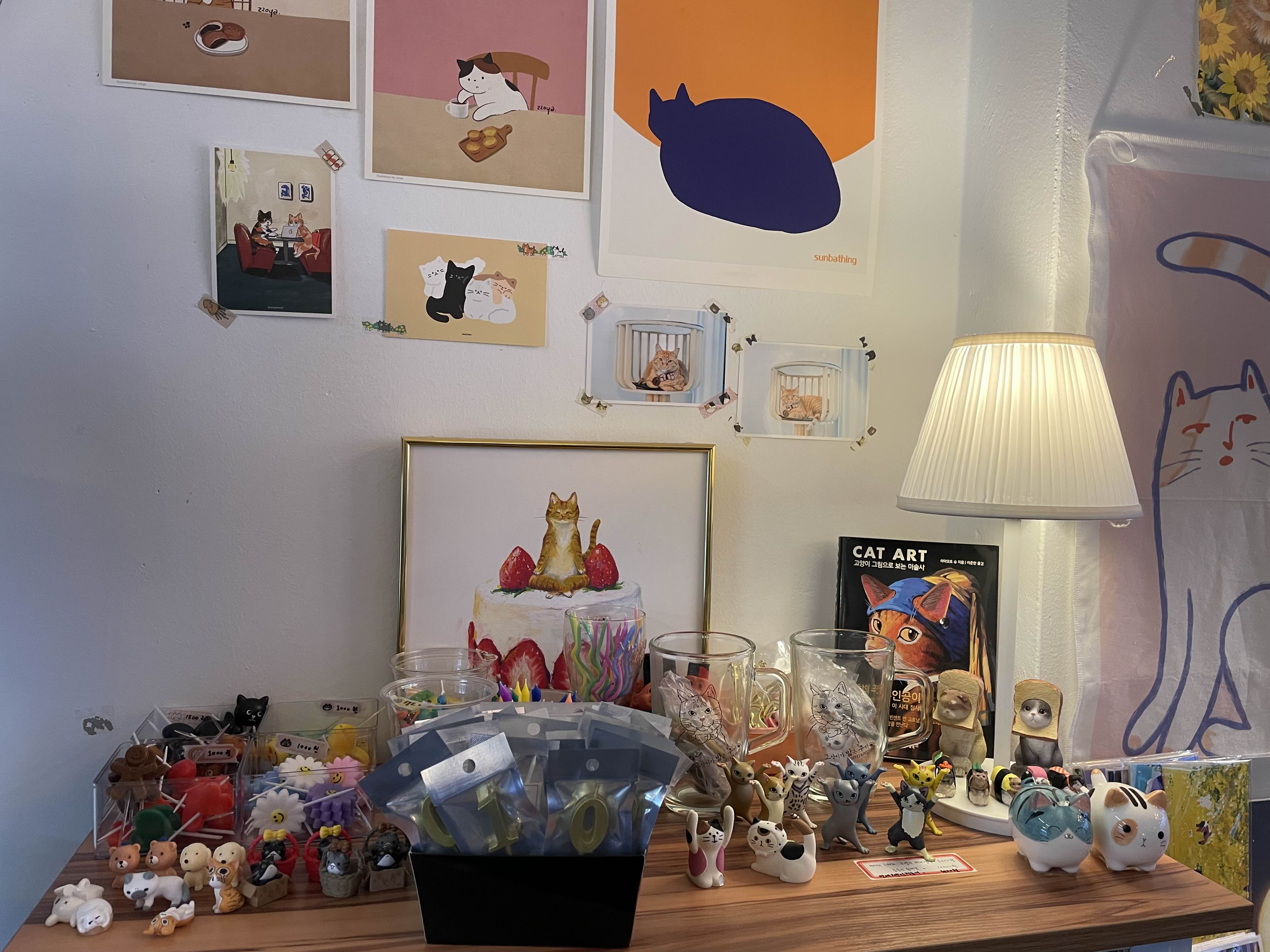 고양이 피규어가 만세를 하는 것 같아서 멍하니 바라보면 재밌습니다.